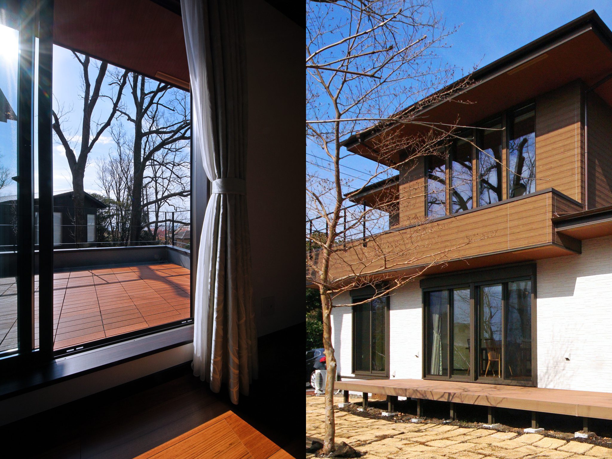 庭の前には、エキストラリビングとして寛げるデッキスペースを設けました。
