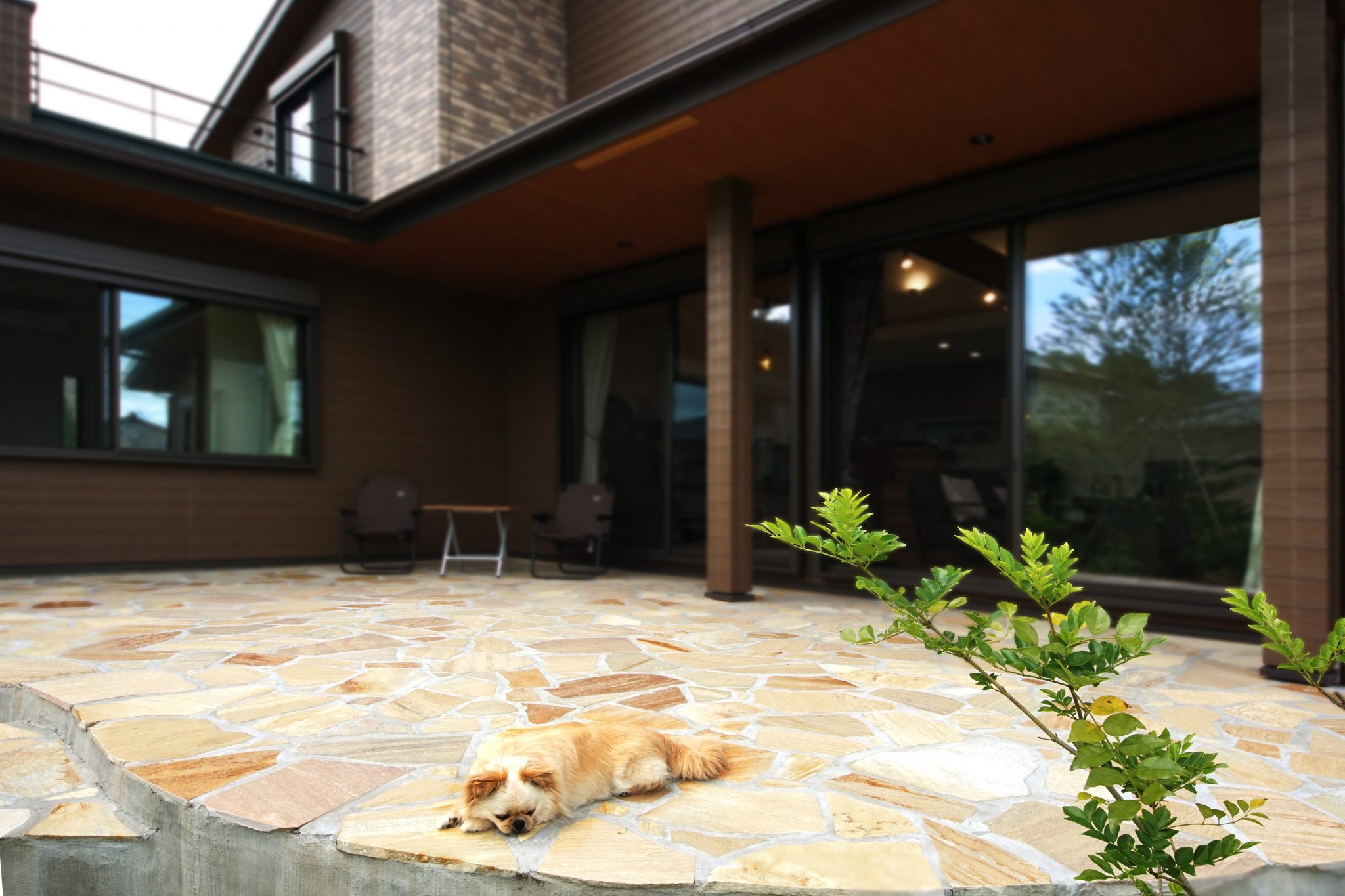 広いテラスはご家族だけでなくワンちゃんにも居心地の良いセカンドリビング。ご家族が集まった際は、お庭と景色を望みながらBBQも楽しまれているそうです。