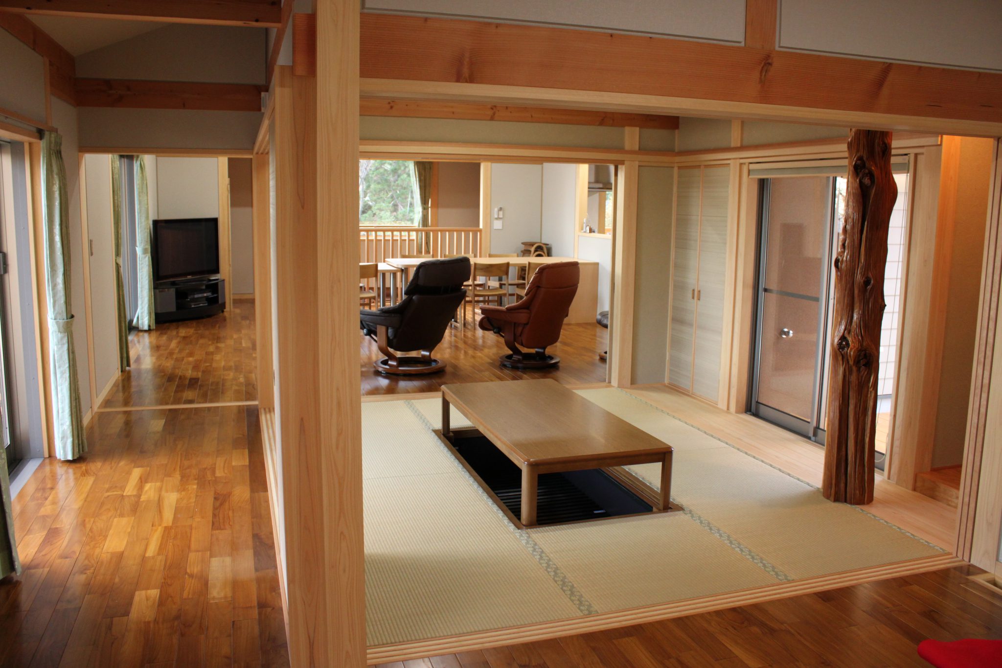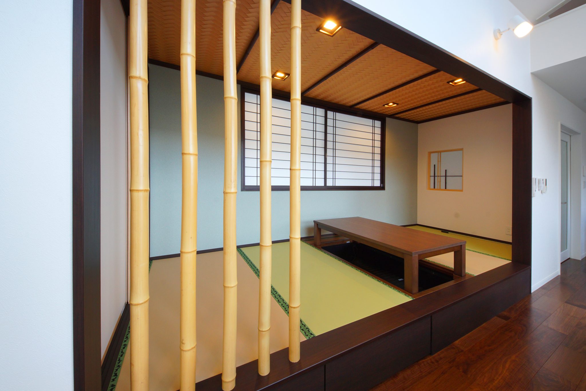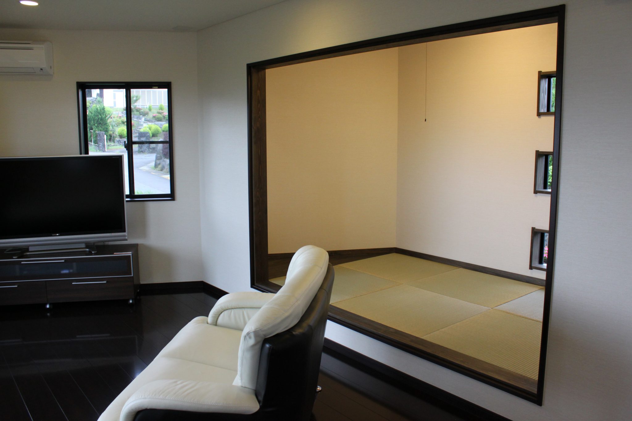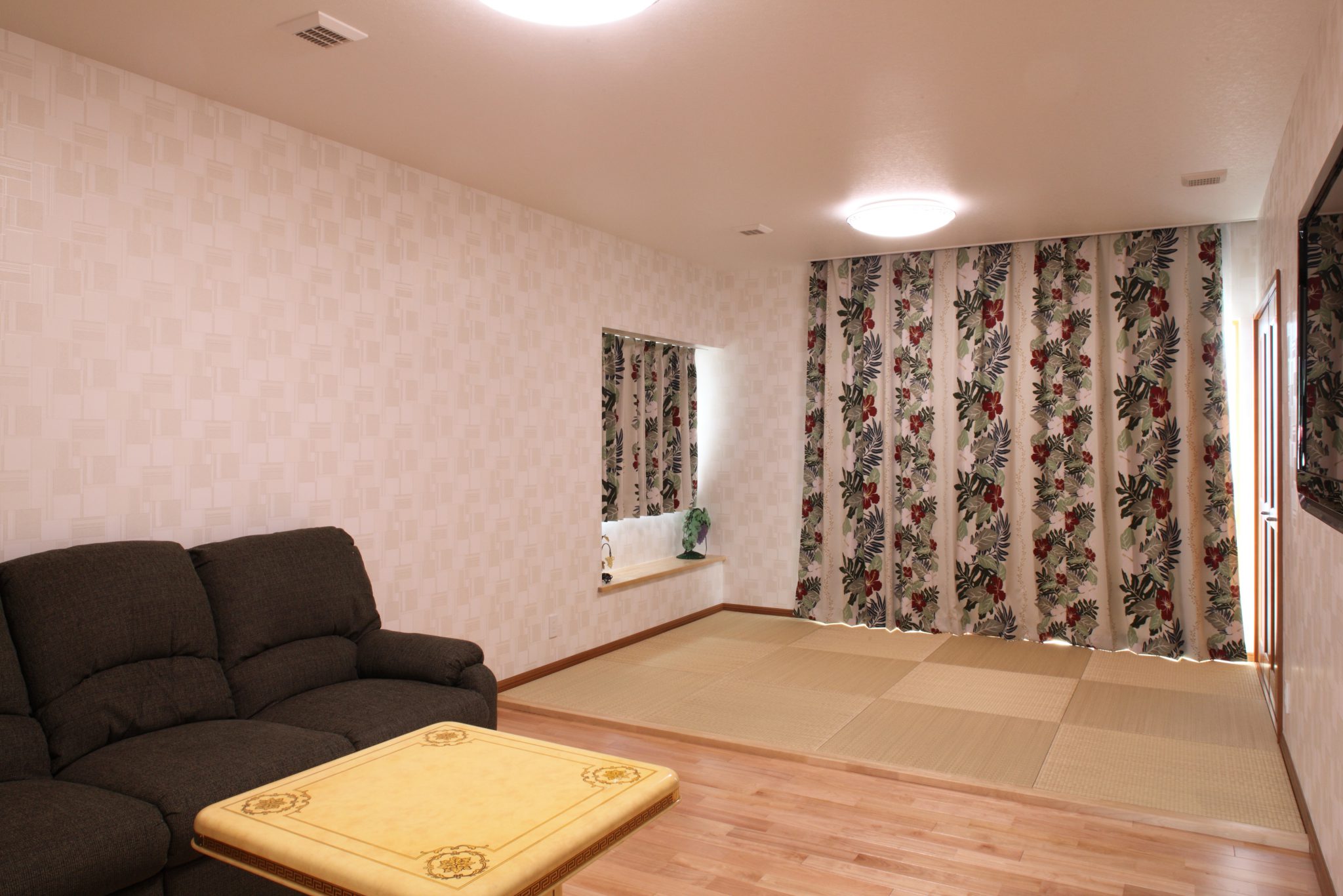部屋の一部にタタミを採り入れた、和洋折衷のリラックス空間。