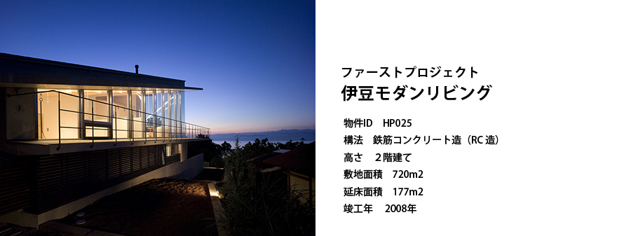 「伊豆の自然にとけ込み 暮らしながら感じとれる建物」(スイッチ一級建築士事務所 石川氏)というコンセプトのもと伊東市内に完成した、ガラス張りのモダン建築。