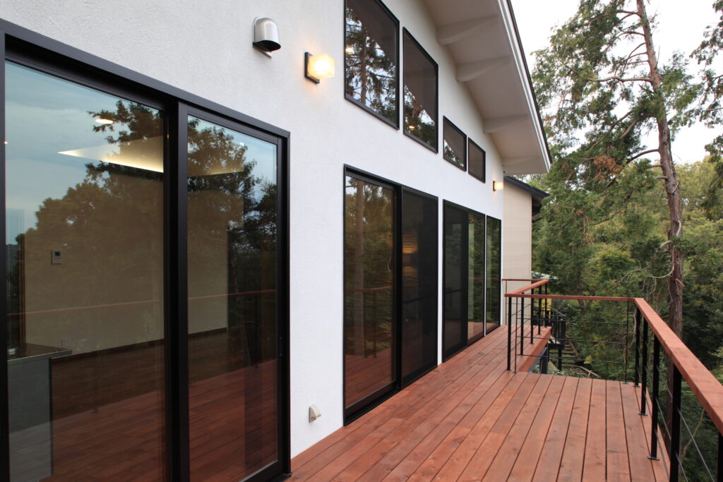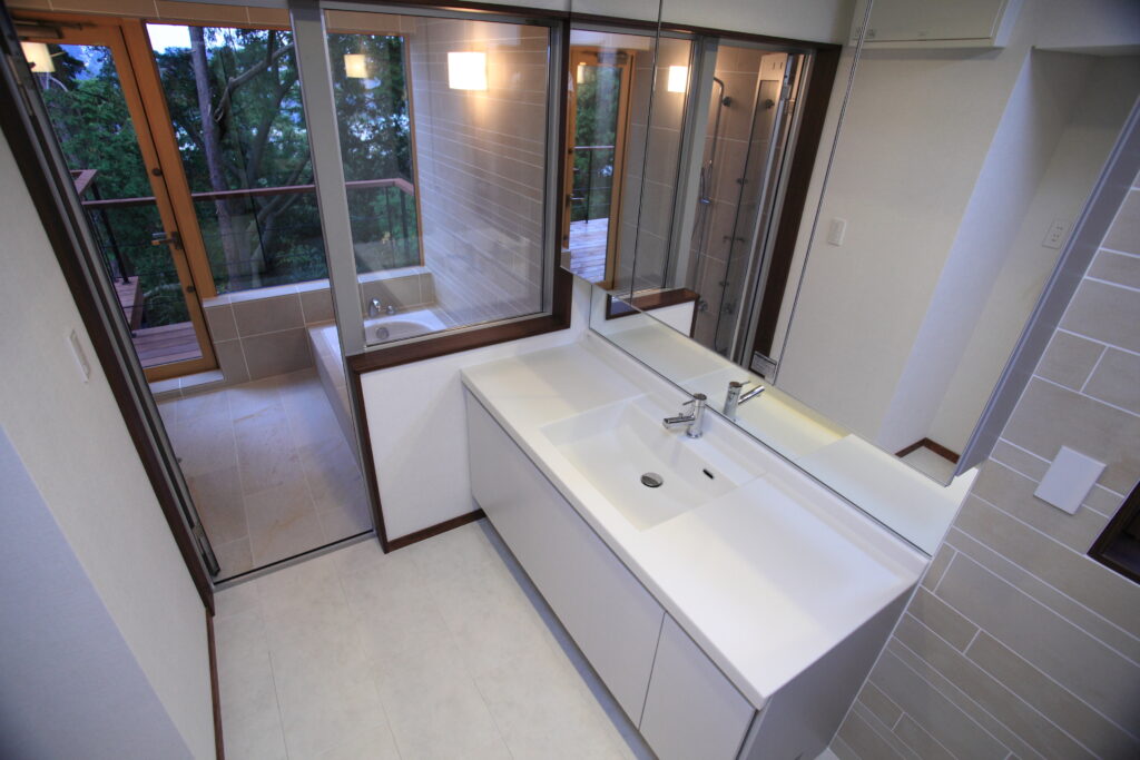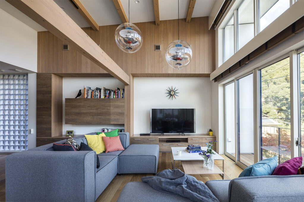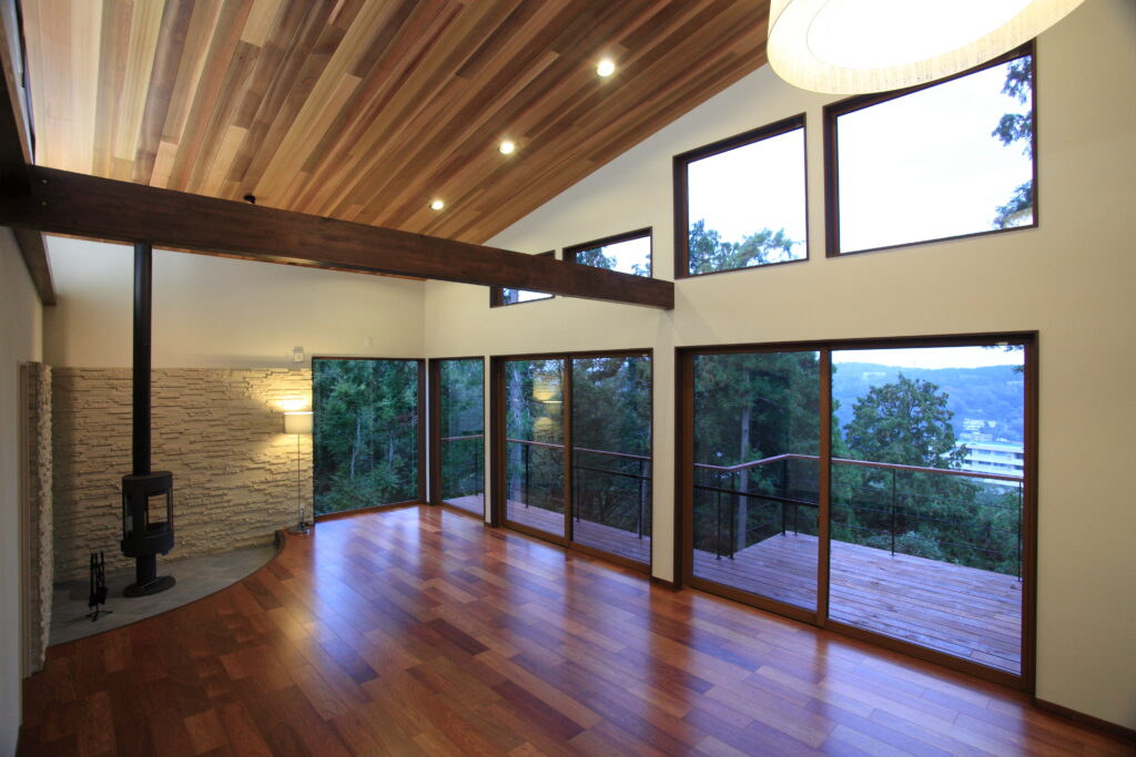 敷地に高低差があることで目の前を遮るものが無く、大開口の間取りを計画。長期優良住宅であったため在来工法では構造上の制約により難しかった間取りも、SE構法を採用したことで、より自由なご提案をさせていただくことが出来ました。