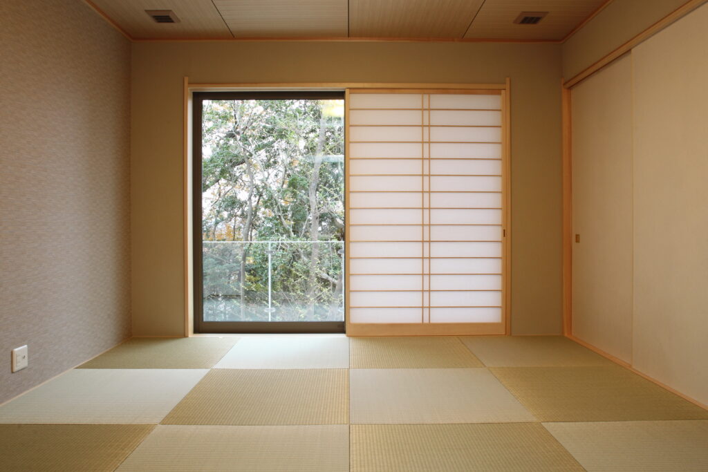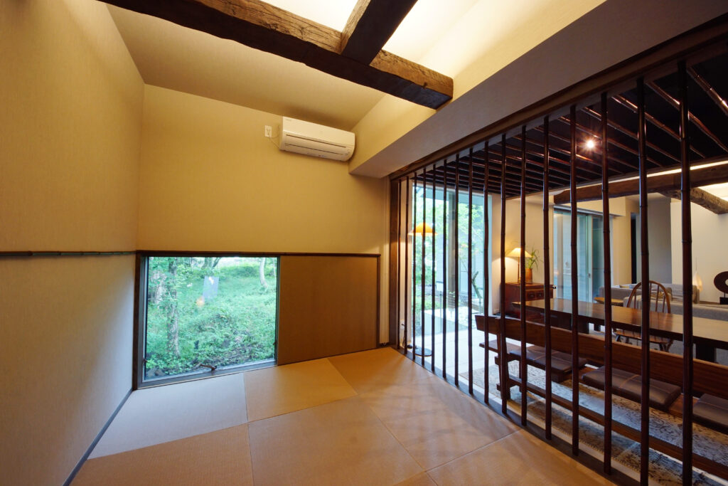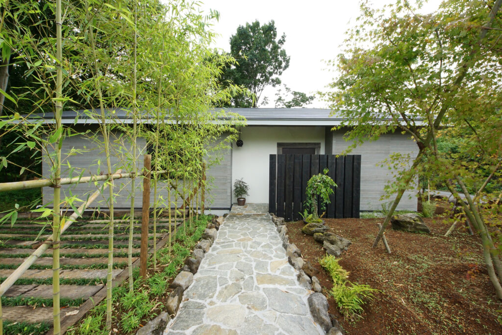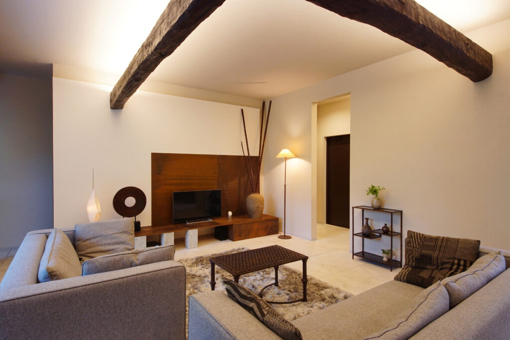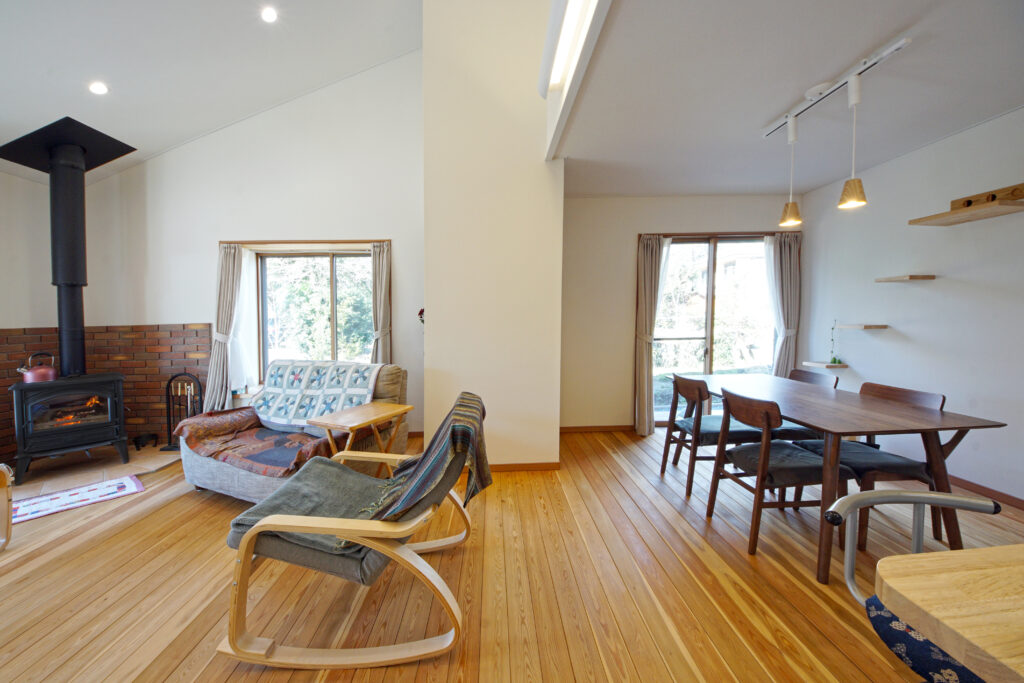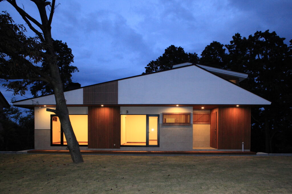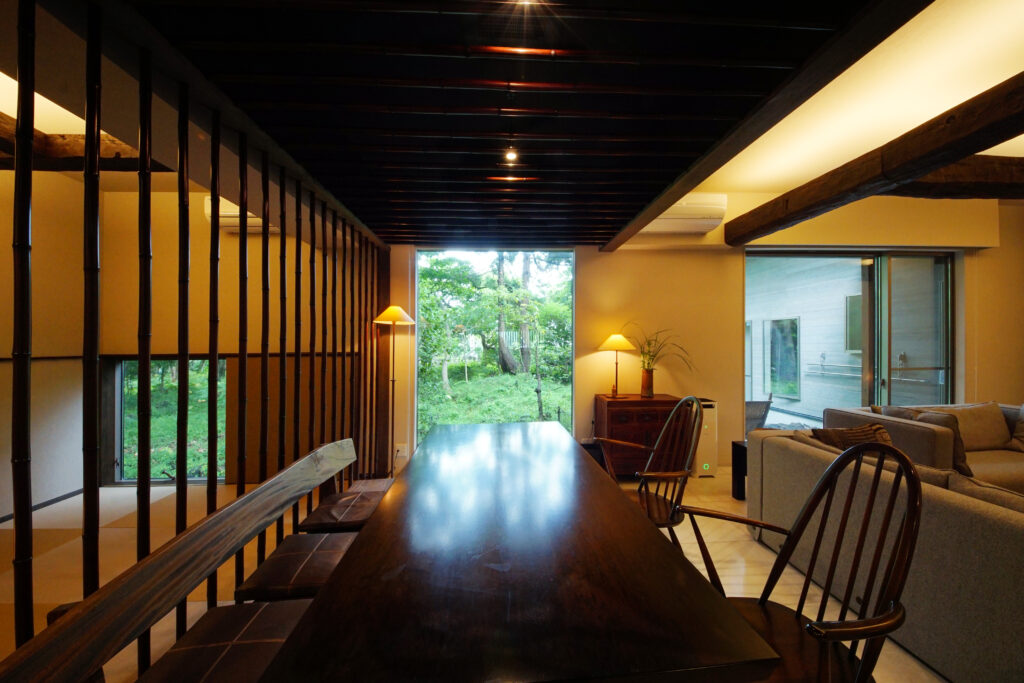 着工前から自生していた建物間際の立木を大切に扱い、自然の造形が美しい雑木の庭が出来ました。 室内にはフローリングは無く、居間は暖房完備の600角タイル張り。古木の疑似梁に天井の間接照明を隠しアクセントとしています。こだわ […]