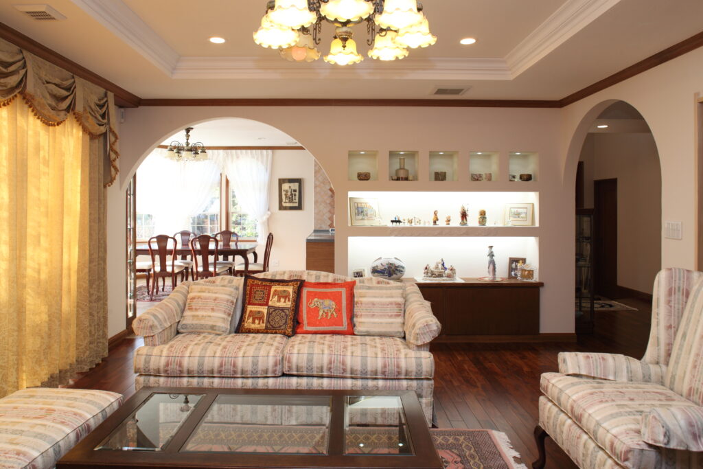 褐色の瓦とサンドストーン張りの外壁をアクセントに、爽やかな風景を連想させる南欧風の住宅です。 海外でご購入された小物や絵画などを飾るスペースが欲しいと伺っておりましたので、想い出の品々が違和感なく溶け込むシーンを考えて、 […]