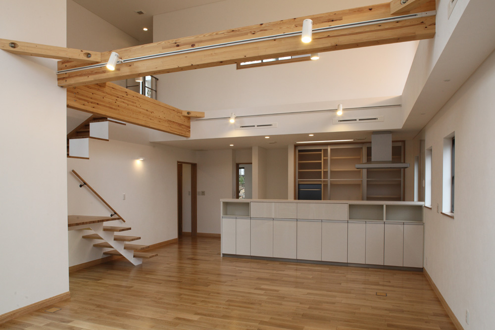 お施主様ご要望の外観デザインは、一筆につながった屋根や小口が特徴です。 モノトーンをベースに、木部の色合いが引き立つ配色にまとめました。 室内は吹抜けと大空間の組み合わせでSE構法の魅力を最大限に引き出した開放感が魅力で […]