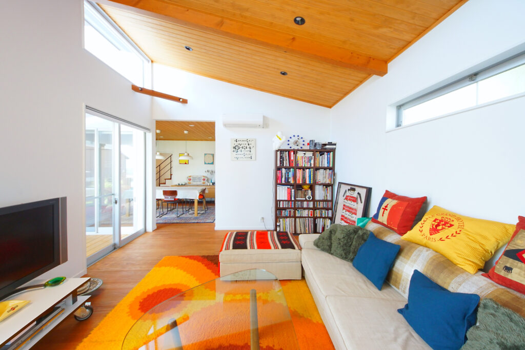 玄関側に設けた高窓は山から吹き降りる風の通り道。リビングの大開口サッシを通ってさわやかな風が吹き抜けていきます。 OMソーラーの心地良さを「春、秋の肌寒い季節に窓を開け放っていられる贅沢さ」とお施主様はおっしゃいます。太 […]